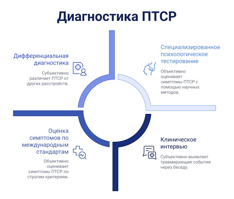 Крайне важно, чтобы диагностика проходила в атмосфере безопасности и доверия. Многие пациенты боятся погружения в болезненные воспоминания, однако врач владеет методиками, которые позволяют проводить оценку максимально деликатно.